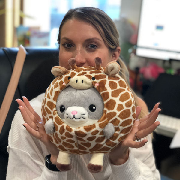 - Specs: 7 squishy inches of Kitty agent with a completely removable 7" Giraffe disguise! All new polyester fiber, ages 3 and up!